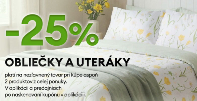 25 % zľava na obliečky a uteráky