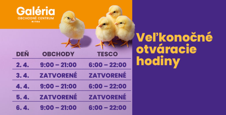 Otváracie hodiny v OC Galéria Nitra!